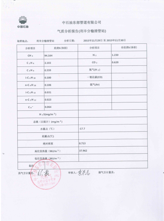 宿州中燃气质分析报告